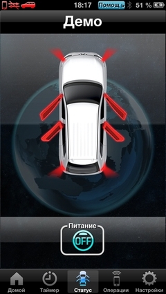 - проверка статуса автомобиля: открыты или закрыты двери, крышка багажника, капот, включены ли фары головного света, отображение текущего заряда батареи